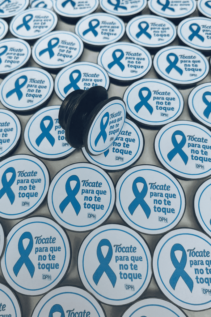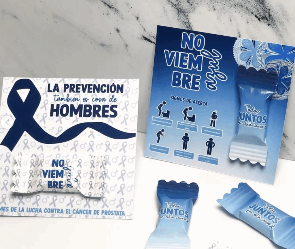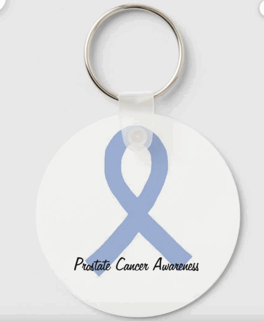 Llavero personalizado con temática azul de concienciación sobre el cáncer masculino.