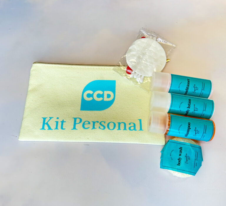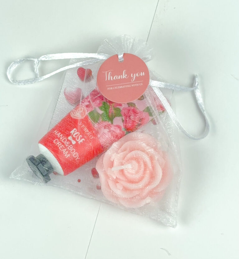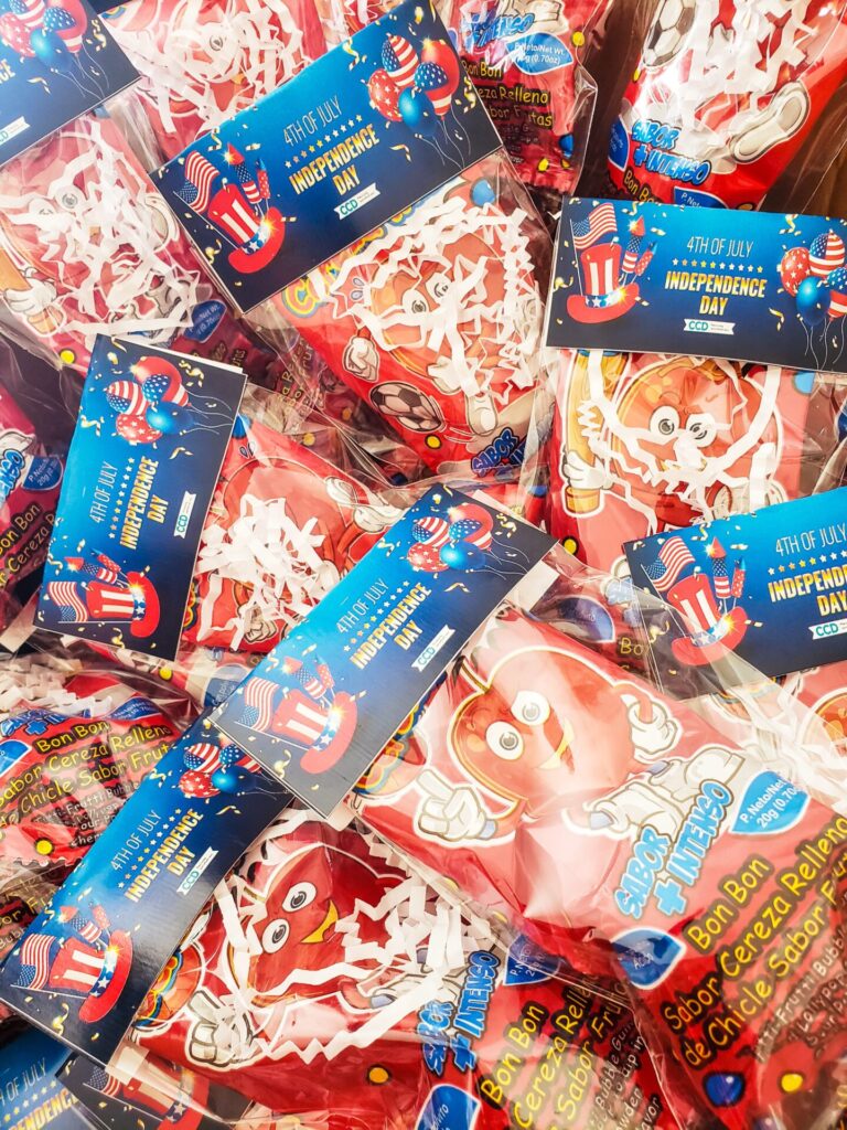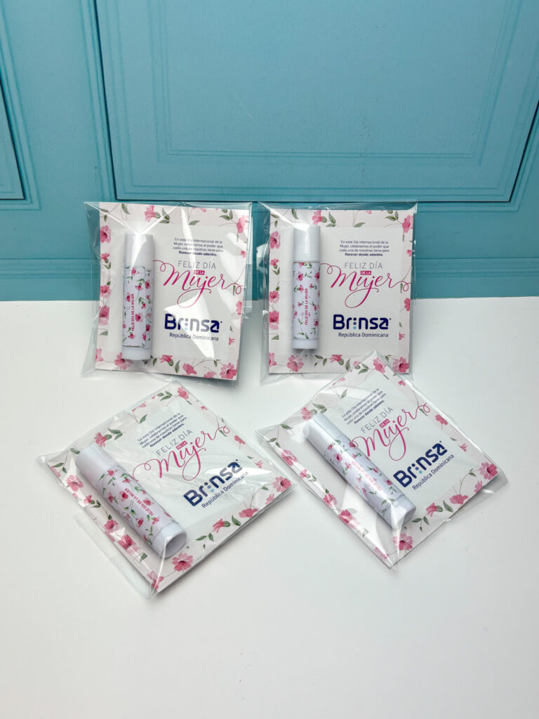 Bolsito plástico transparente con mini productos variados, ideal para campañas o regalos promocionales.