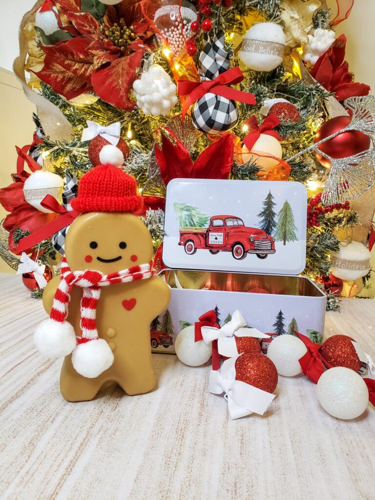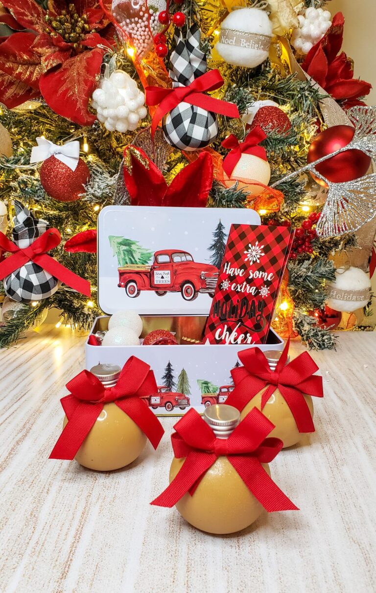 Cajita con 4 unidades de mantecaditos artesanales decorados.