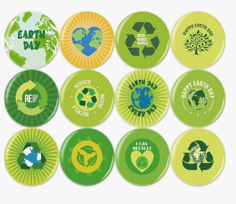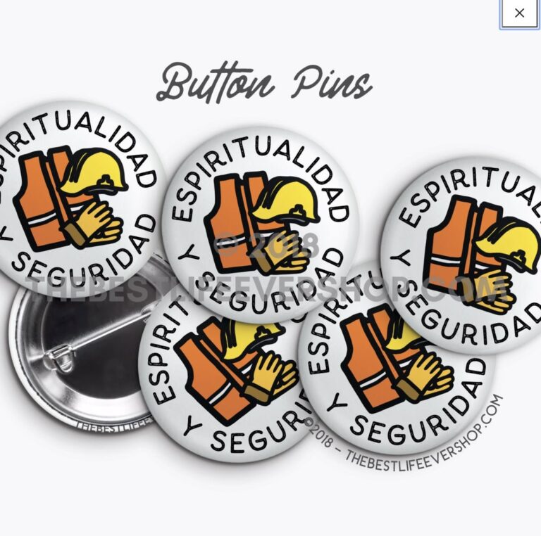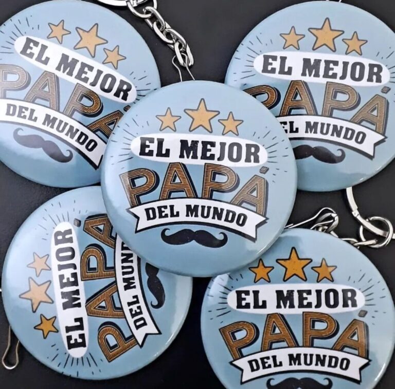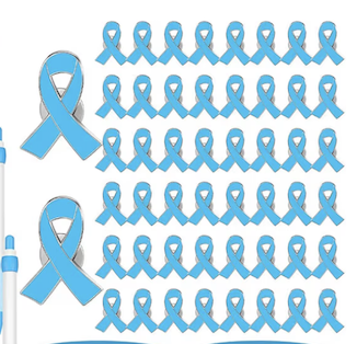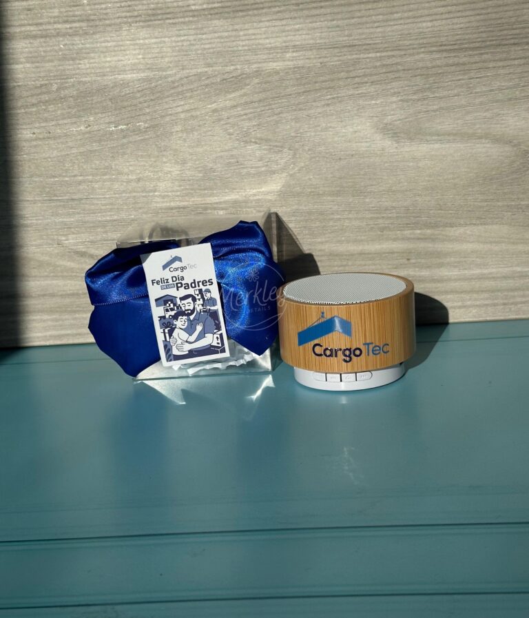 Pin metálico azul presentado en base personalizada alusiva a la campaña.