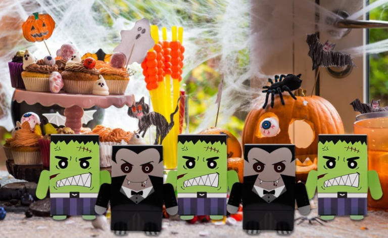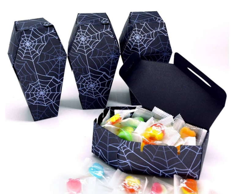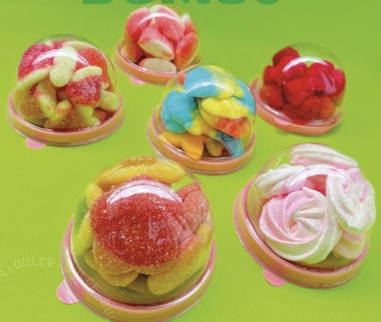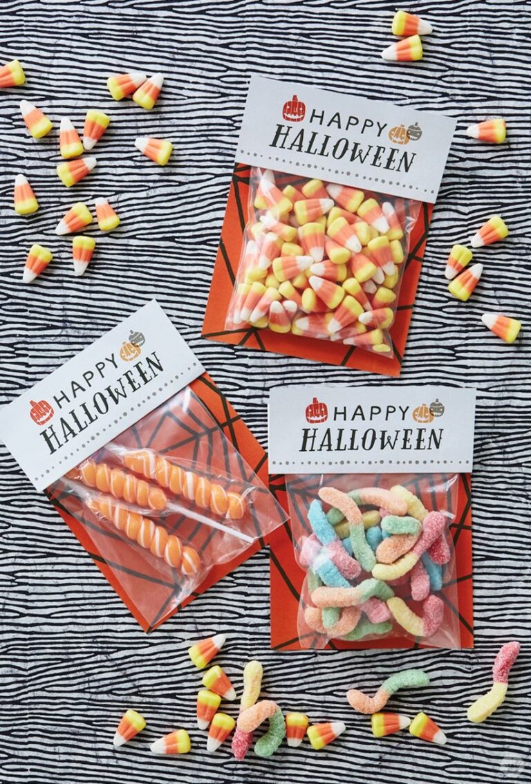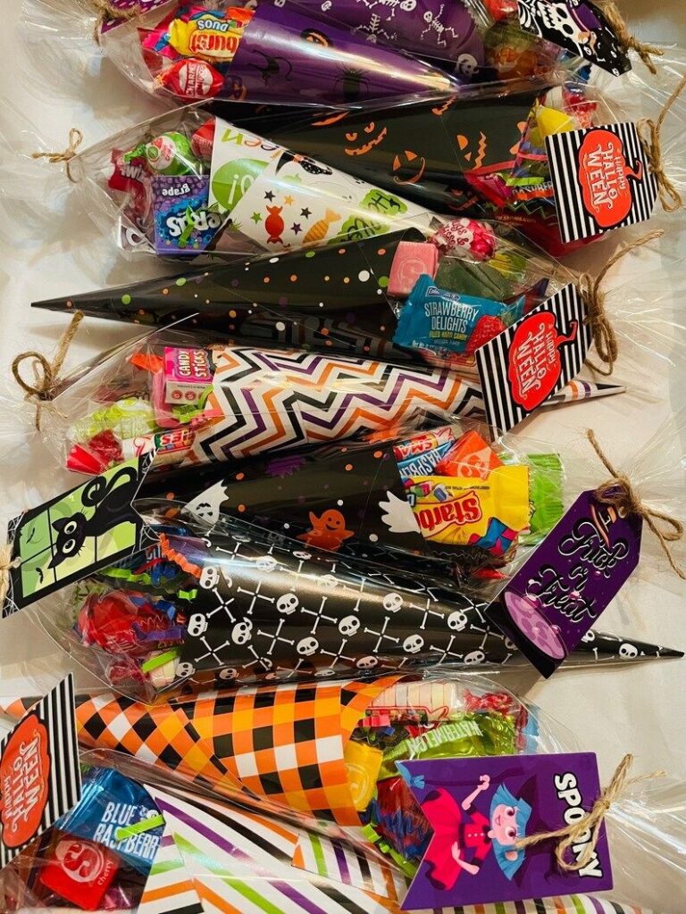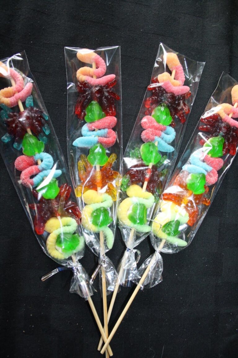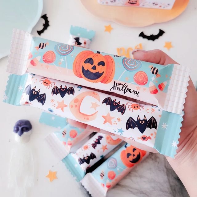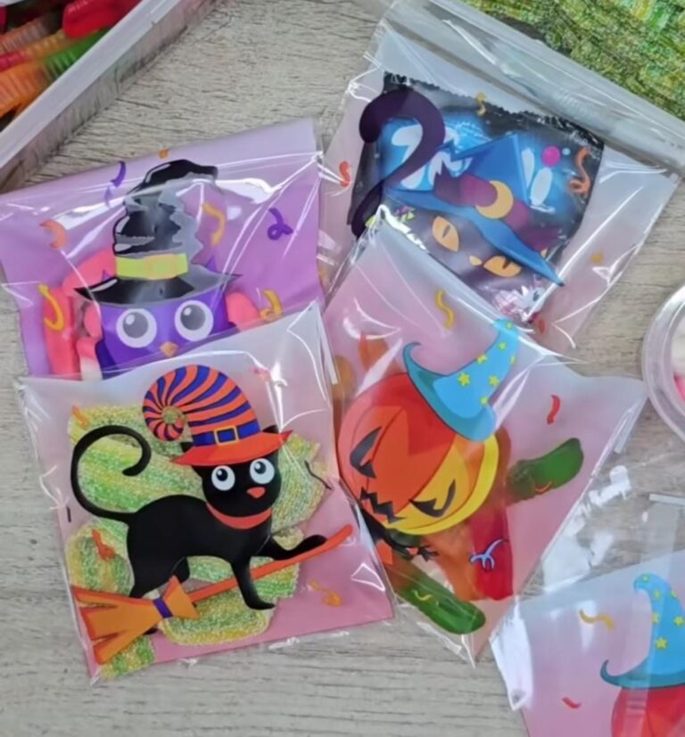 Dulces agridulces en presentación decorativa con temática de Halloween.