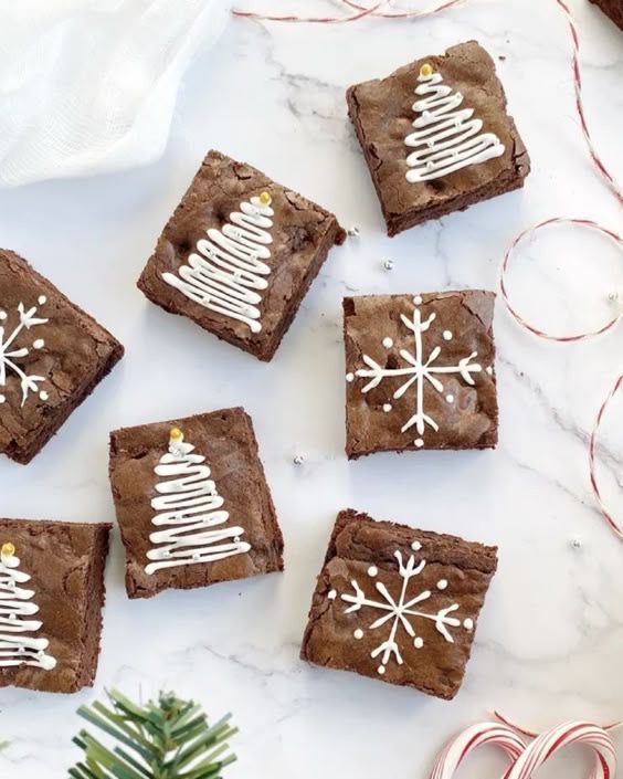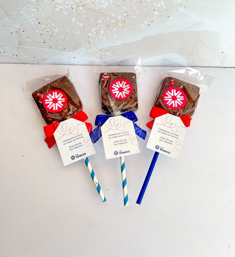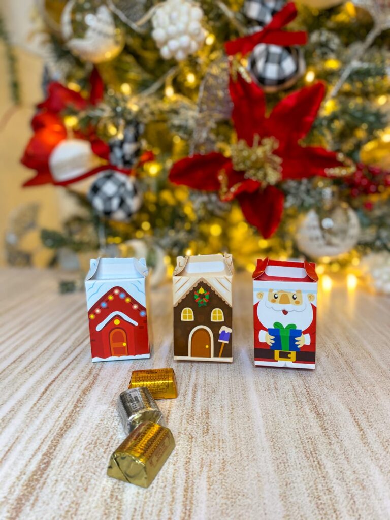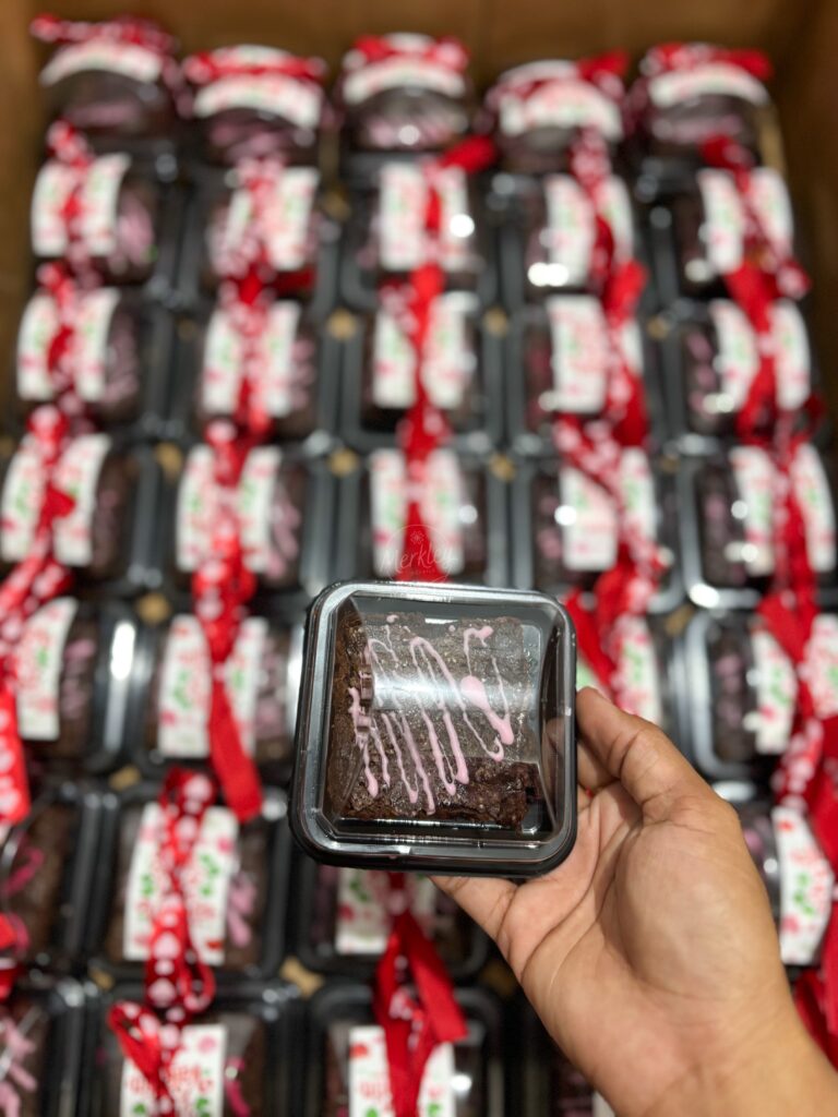 Cajita con 3 unidades de mini brownies decorados con temática festiva.