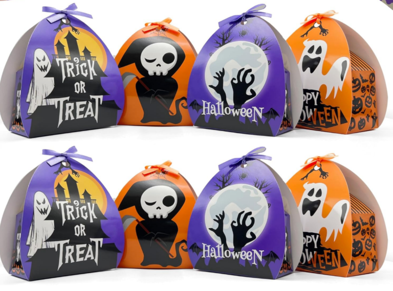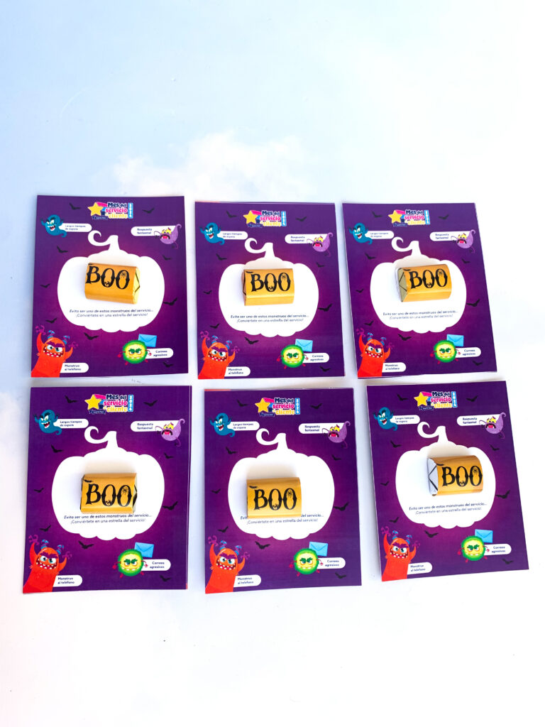 Presentación decorativa con 3 polvorones, ideal para obsequios de Halloween.