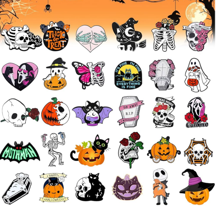 Pines decorativos para ropa con diseños divertidos y temáticos de Halloween.