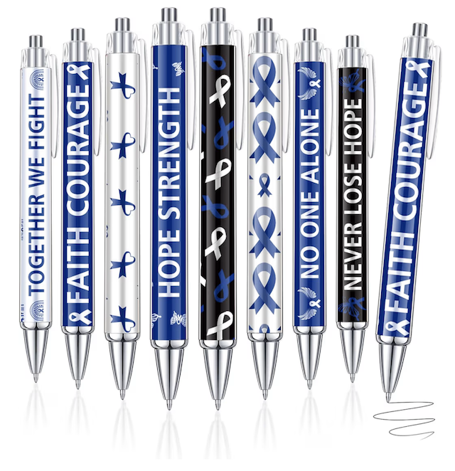Lapicero con base personalizada en tonos azules alusivos al tema de concienciación.